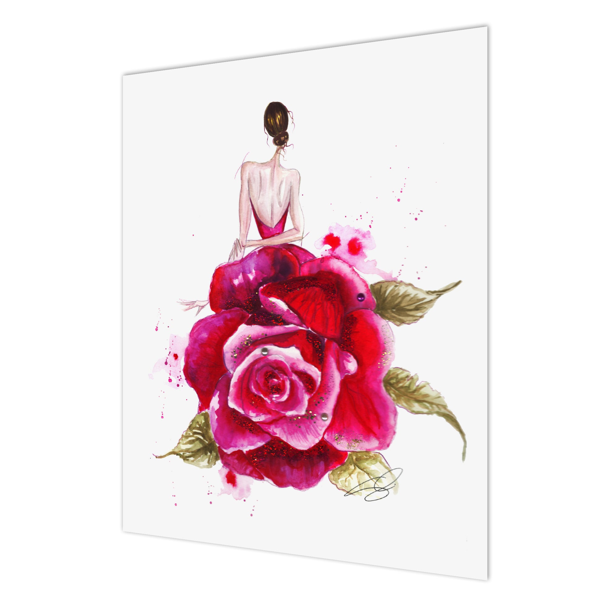 Fashion illustration art print - Rose gown back view