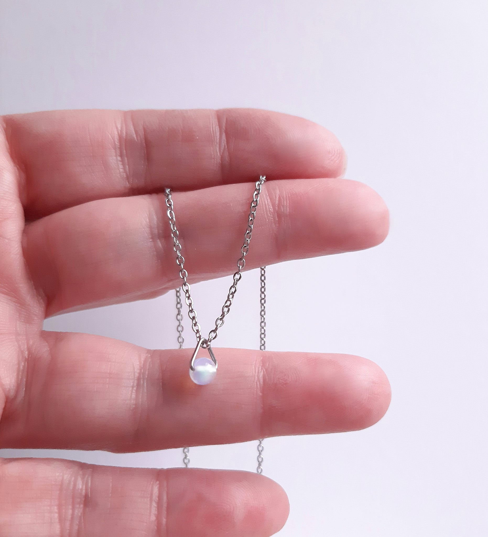 - Featuring a 4 mm round iridescent Opaline crystal