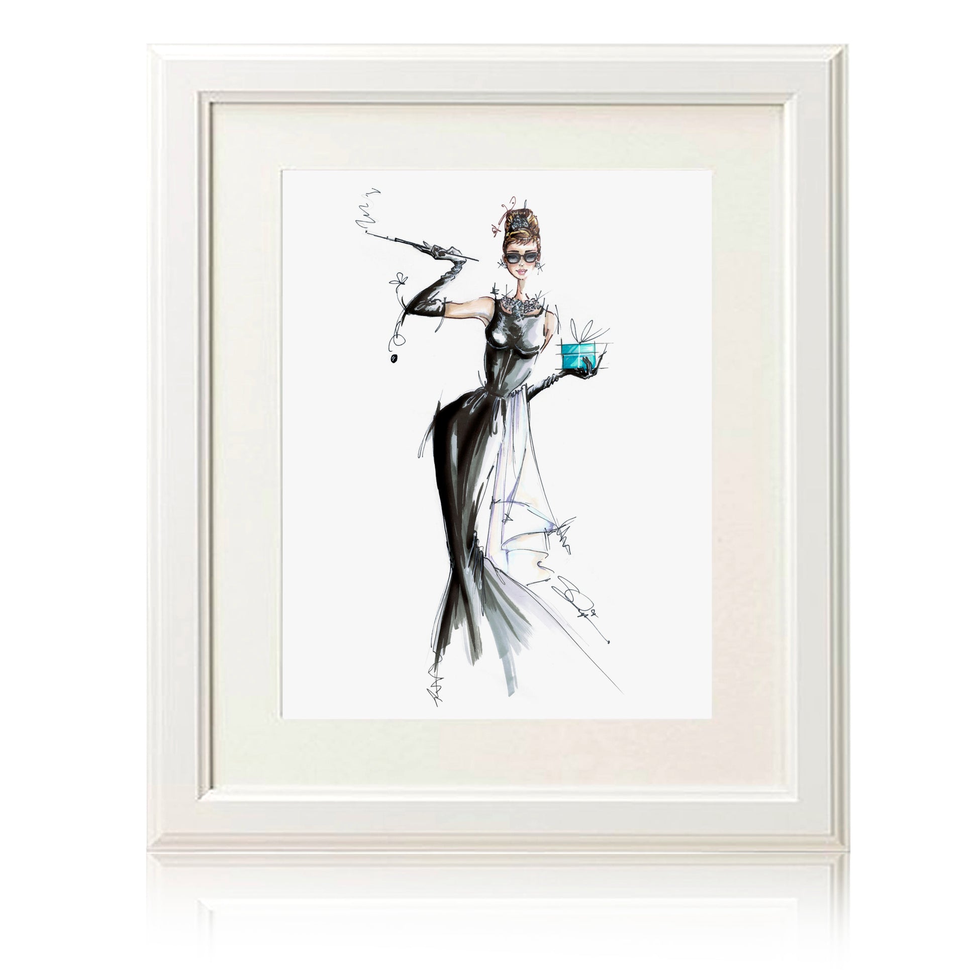 Enhance any room decor or surprise your fav fashionista with our hand-drawn fashion illustration reproduction of Audrey Hepburn in Breakfast at Tiffany's
