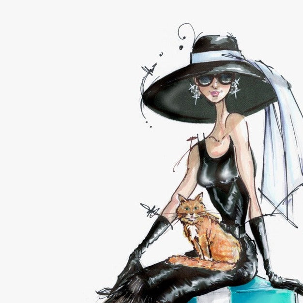 Enhance any room decor or surprise your fav fashionista with our hand-drawn fashion illustration reproduction of Audrey Hepburn in Breakfast at Tiffany's