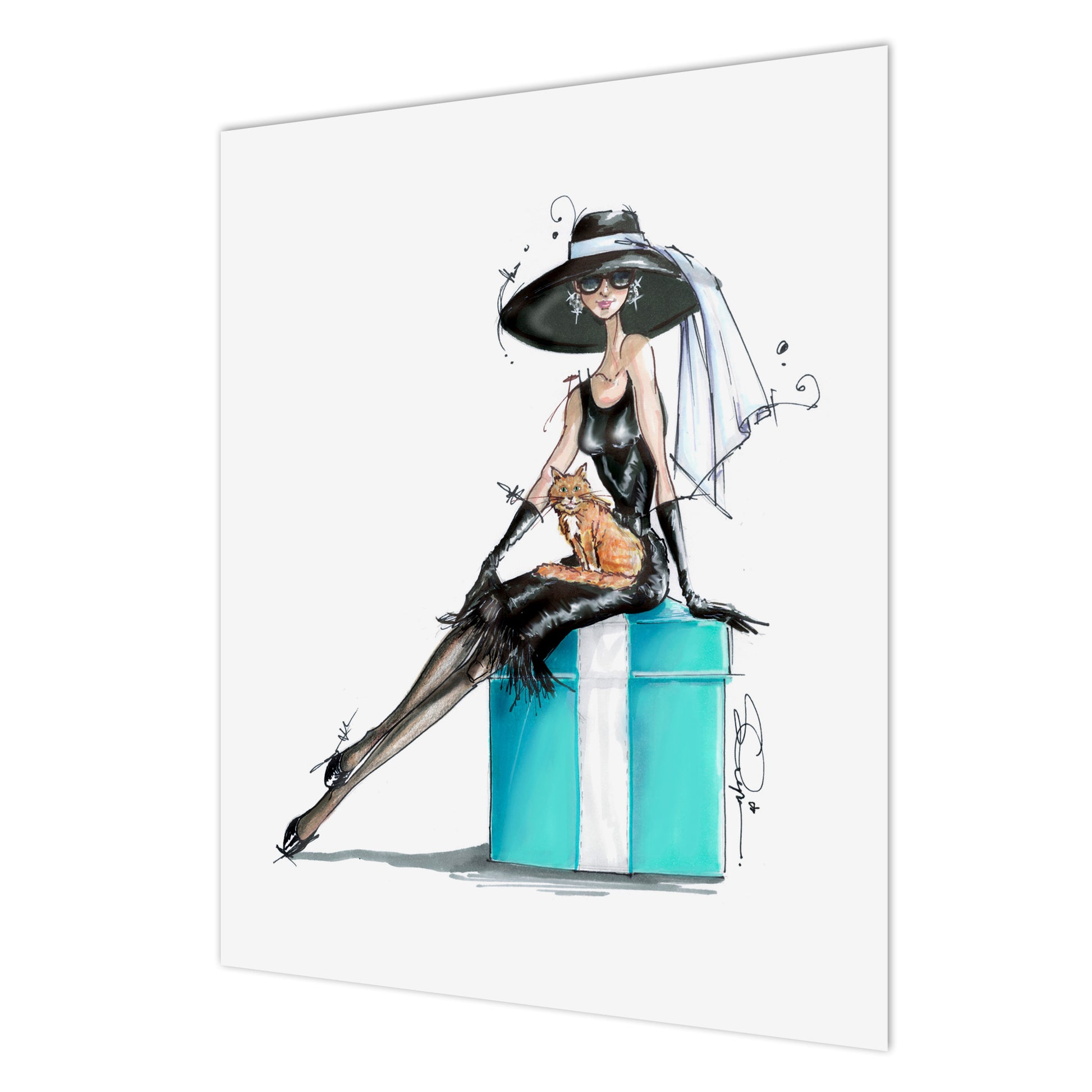 Breakfast at Tiffany's fashion illustration art print - Audrey in her cocktail dress