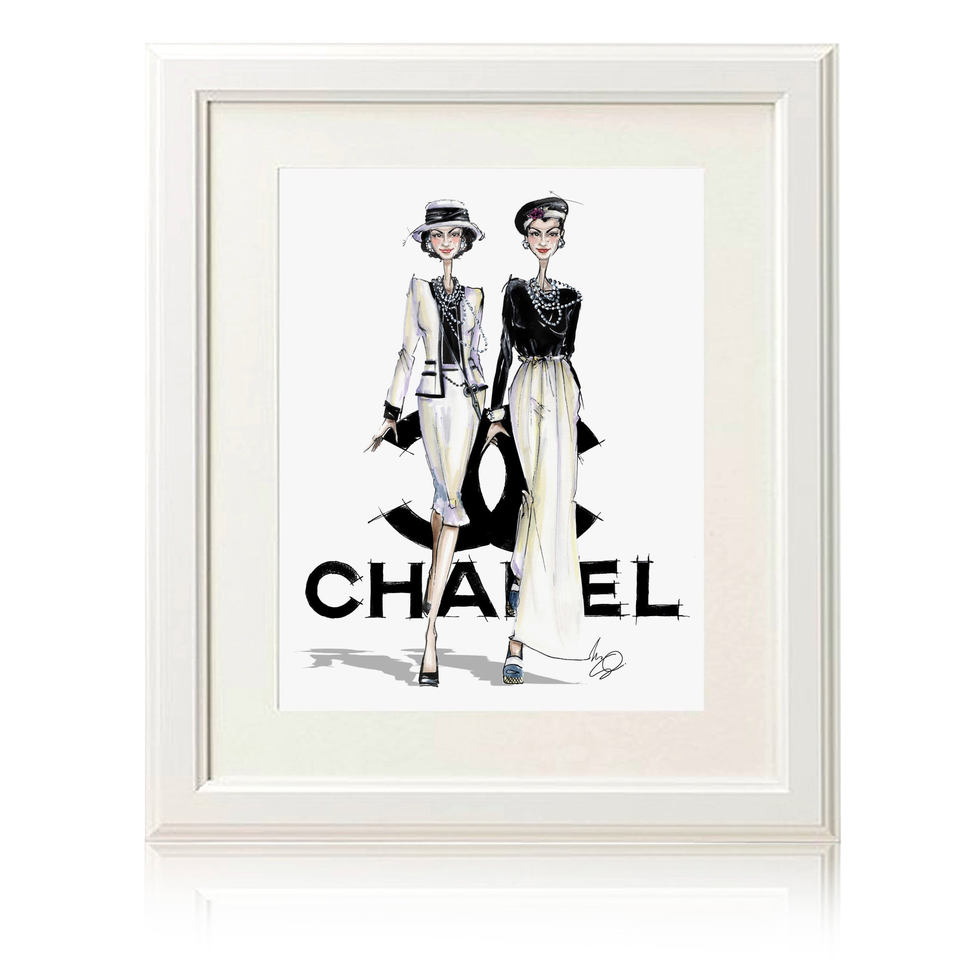 Our hand-drawn fashion illustration reproduction of the majestic Coco Chanel in 2 of her iconic outfits - The perfect surprise for your fav fashionista!